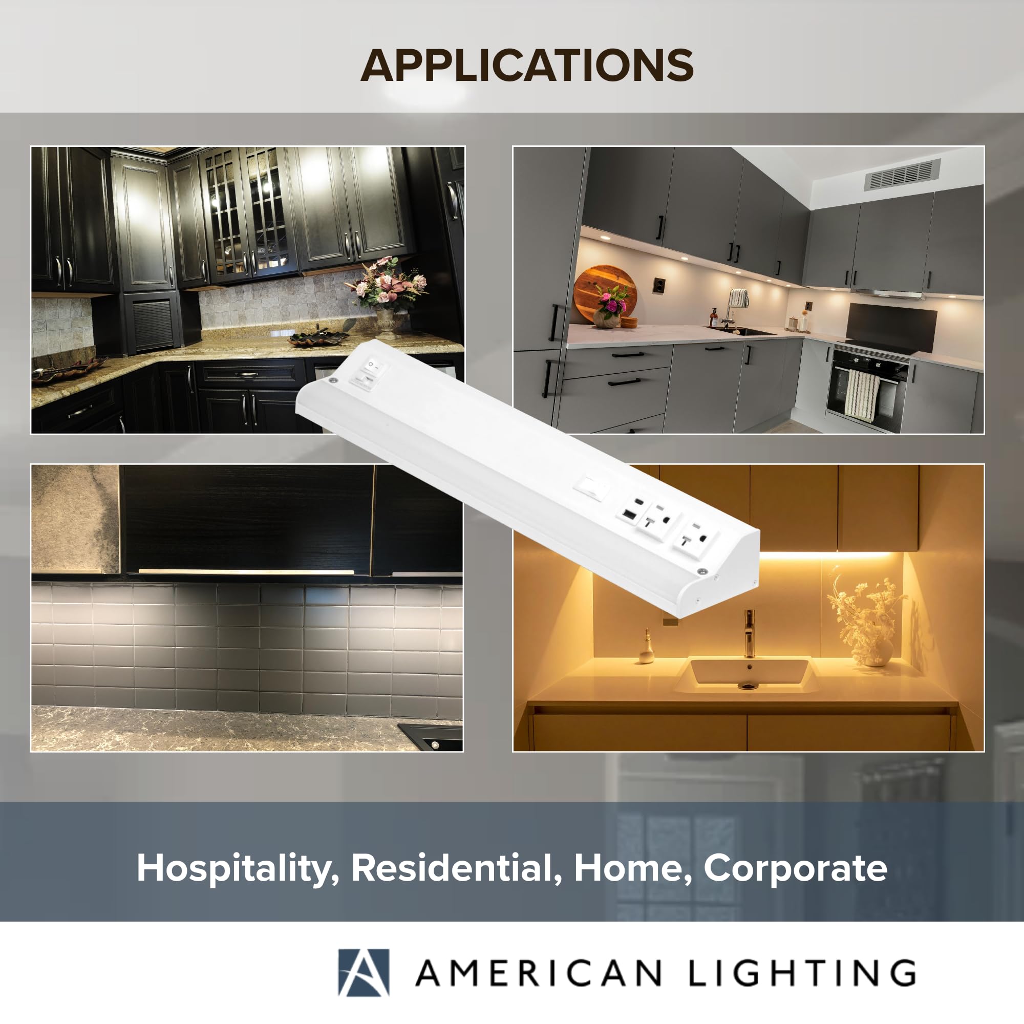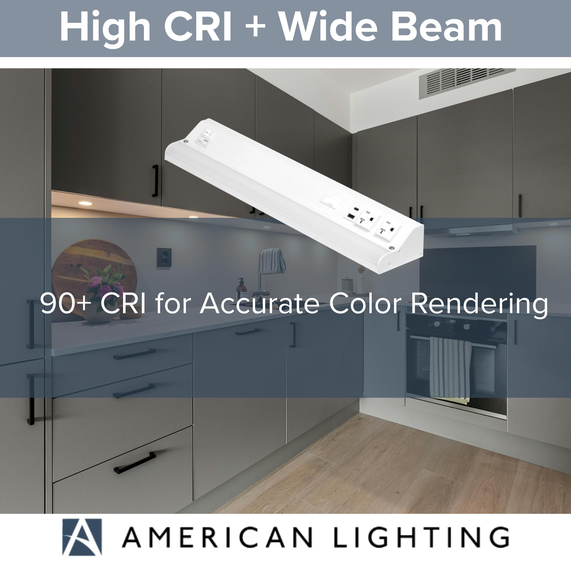 The Best Price American Lighting Courant Plus offers a high-quality undercabinet lighting solution featuring an 18-inch LED fixture with five selectable color temperatures, 90+ CRI, and 1000 lumens for bright, versatile illumination. With built-in USB-A, USB-C, and 20A receptacles, along with a sleek white finish, this Title 24 compliant 2-pack combines convenience, energy efficiency, and modern style—making it an excellent choice for kitchens or workspaces.