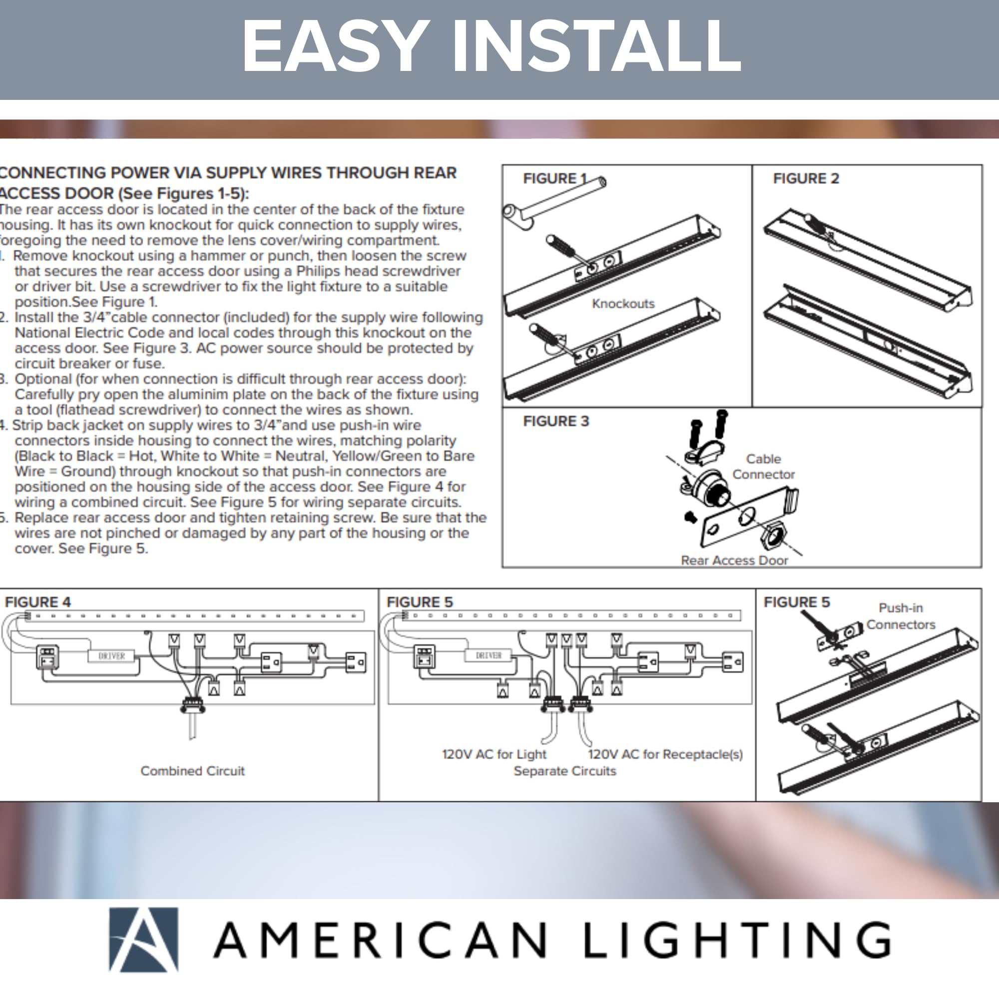 The American Lighting Courant Plus Undercabinet Light is a versatile and energy-efficient solution for modern spaces, offering adjustable color temperatures, high color accuracy, and impressive brightness. With convenient built-in USB-A, USB-C, and 20A receptacles, as well as Title 24 compliance, this product provides enhanced functionality and easy installation, making it an excellent choice for undercabinet lighting needs.