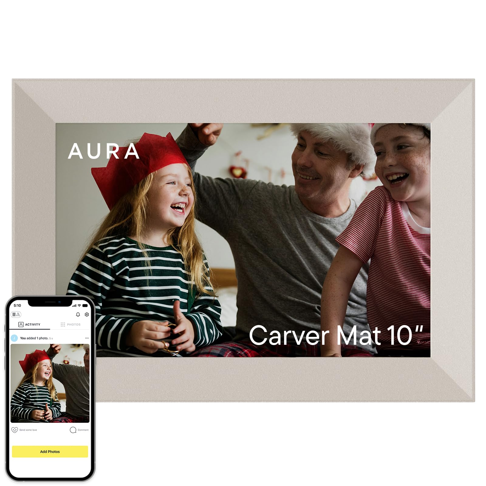 The Aura Carver HD WiFi Digital Picture Frame offers a sleek 10.1” display, easy photo sharing through the Aura App, and free unlimited storage, making it a top choice for displaying cherished memories. Recognized by Wirecutter as the Best Digital Photo Frame of 2022, the Carver HD combines convenience, quality, and value, making it an excellent addition to any home.
