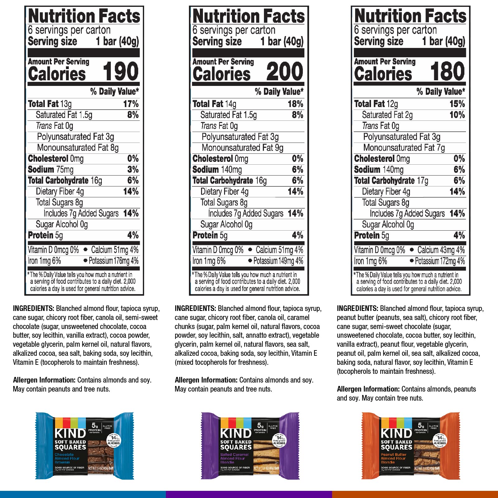 When compared to similar products in the market, such as Nature Valley Crunchy Granola Bars or RXBAR Protein Bars, KIND Soft Baked Squares offer a softer texture that appeals to those who prefer indulgent, chewy snacks. Many competitors often contain added sugars or sugar substitutes, whereas KIND proudly avoids sugar alcohols, making their bars a healthier alternative for conscious consumers. Additionally, the flavors included in the pack—Salted Caramel Almond Flour Blondie, Peanut Butter Almond Flour Blondie, and Chocolate Almond Flour Blondie—target diverse taste preferences, setting them apart from some brands that offer limited flavor variety.