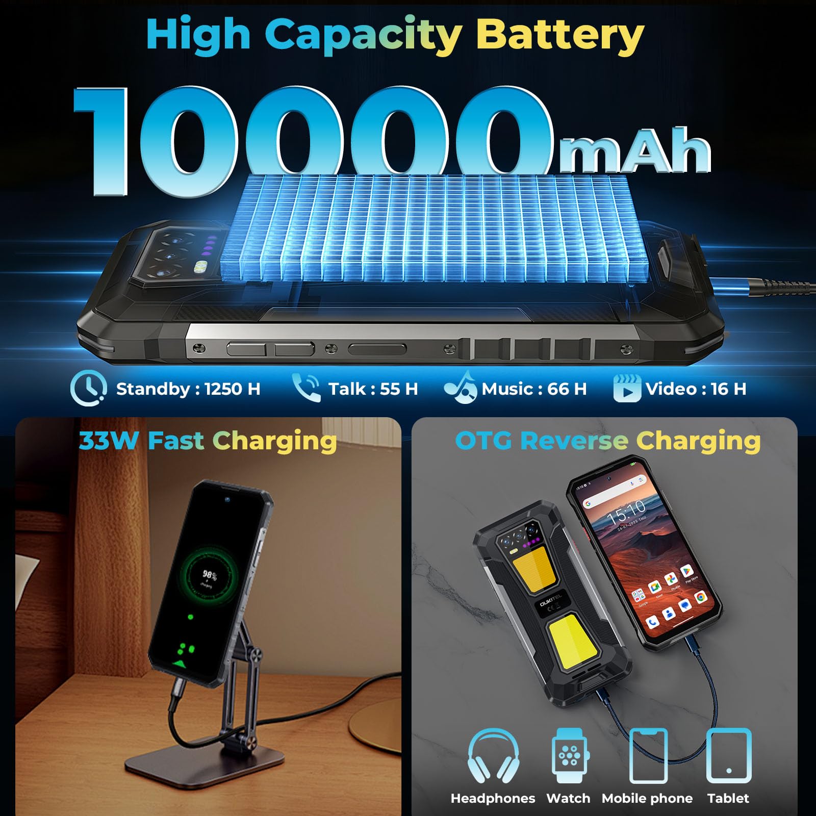 - Standby Time: Up to 1250 hours