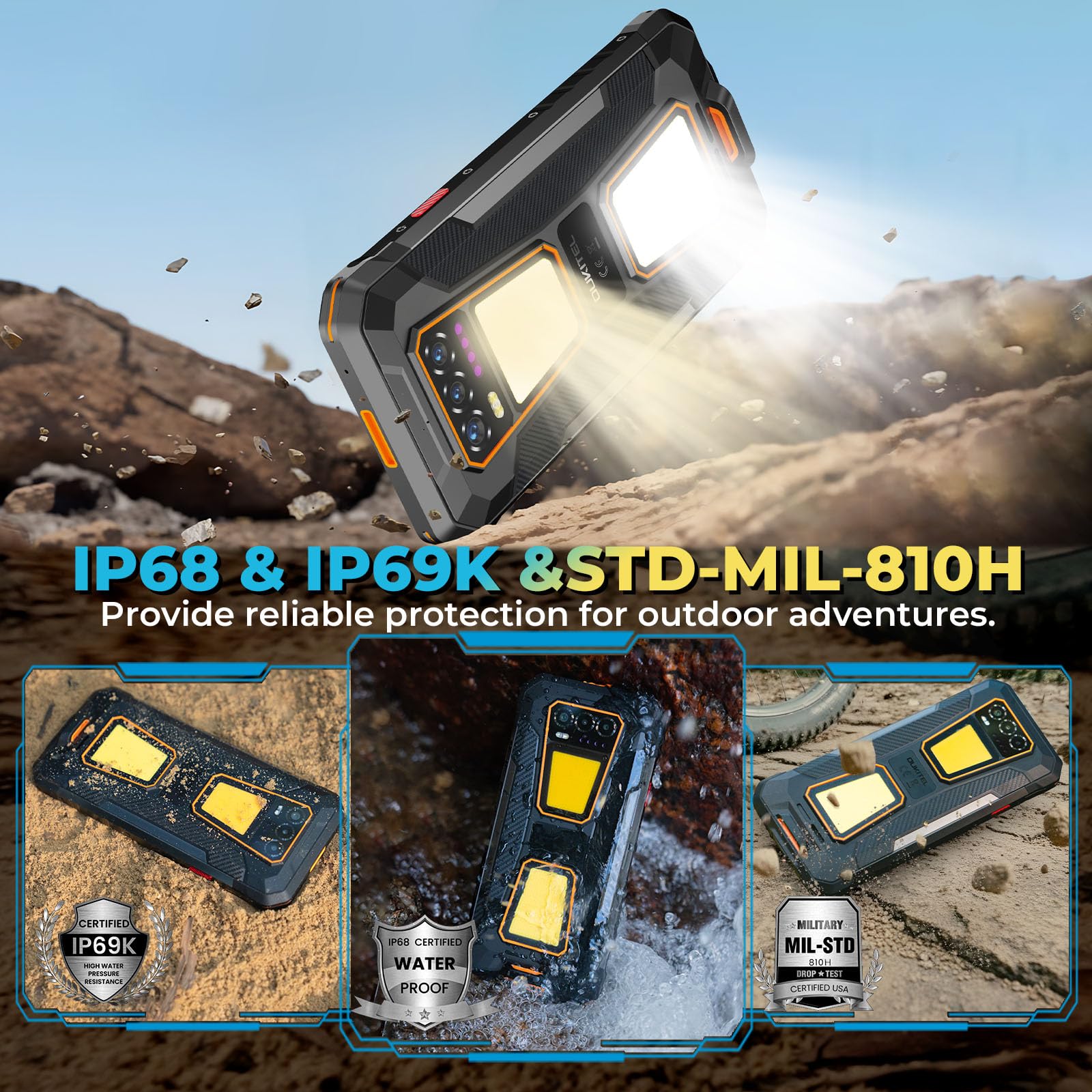 Equipped with extraordinary dual camping lights and a sophisticated camera setup featuring a 64MP main camera, capturing stunning photos in various conditions is seamless. Perfectly suited for outdoor enthusiasts, this phone is IP68 and IP69K certified, offering resistance against water and dust, making it a reliable companion in any challenging setting.