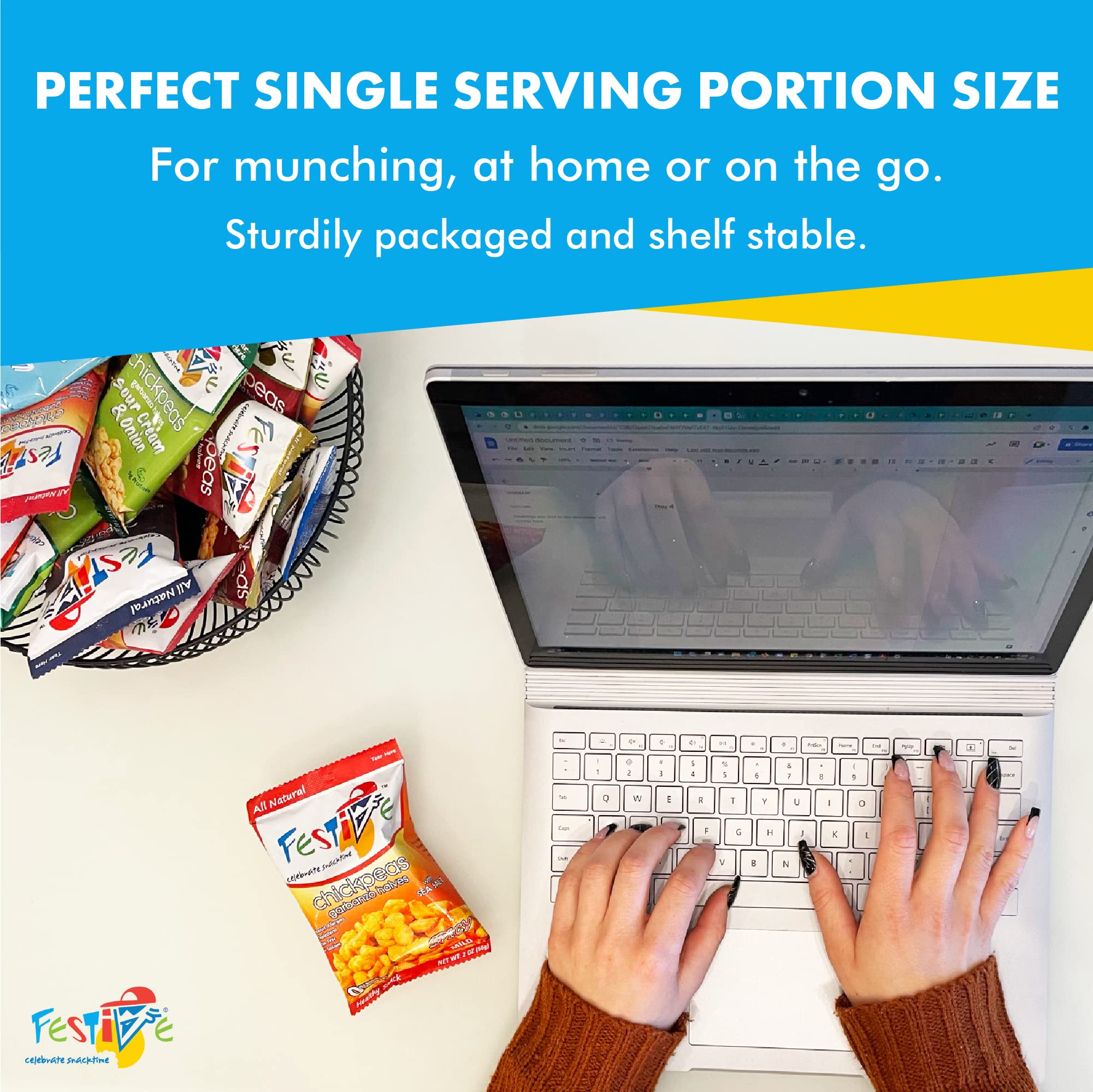 In conclusion, Festive Gourmet Cream Roasted Chickpea Snacks offer a convenient, healthy, and delicious snacking option. With eight 1 oz bags per pack, these crunchy garbanzo beans provide a protein-rich, nut-free, vegan, non-GMO, and soy-free alternative for those seeking balanced nutrition and great taste on the go.