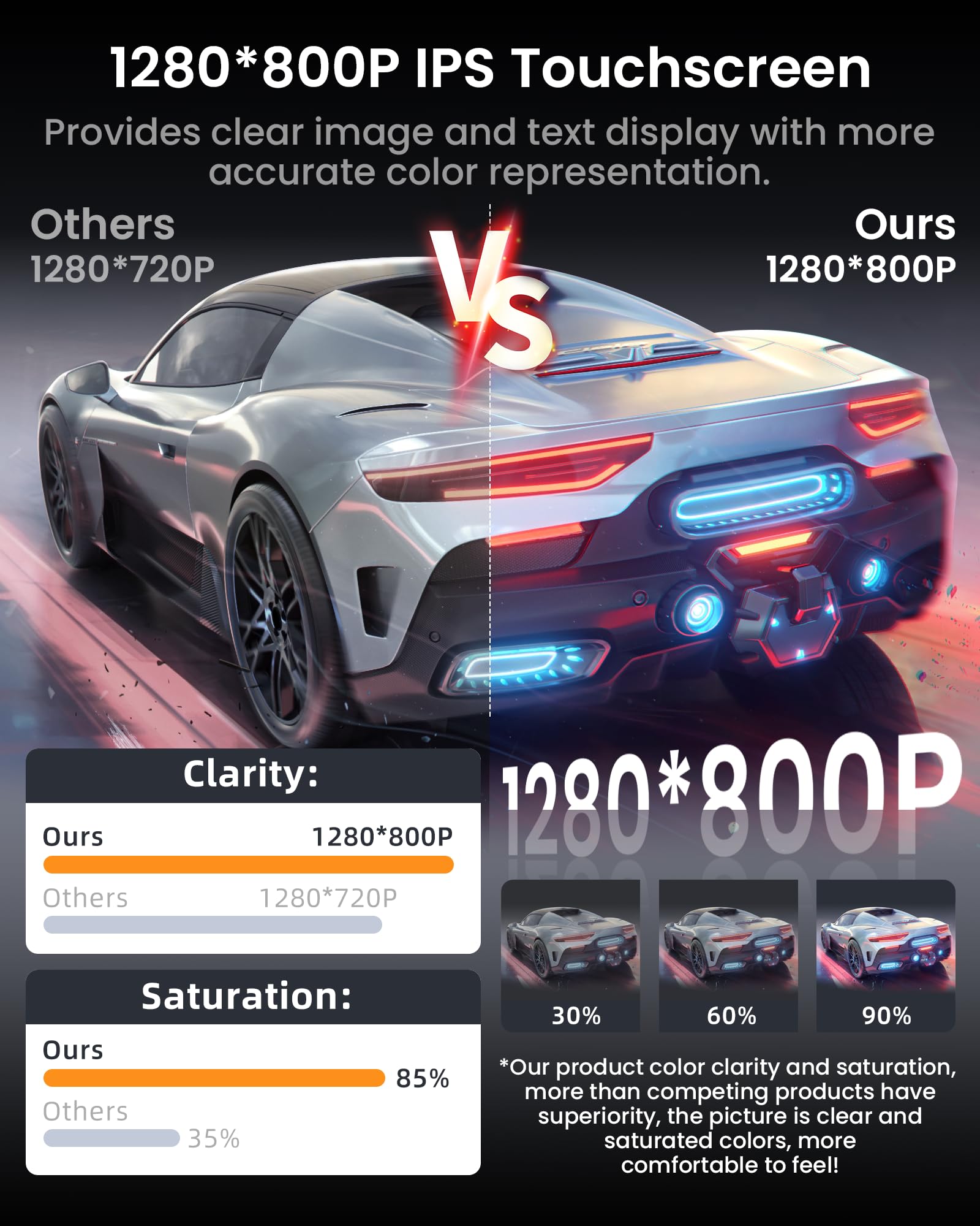 • High-Definition Display: 1280*800 HD IPS touchscreen ensures clear visuals and responsive touch controls.