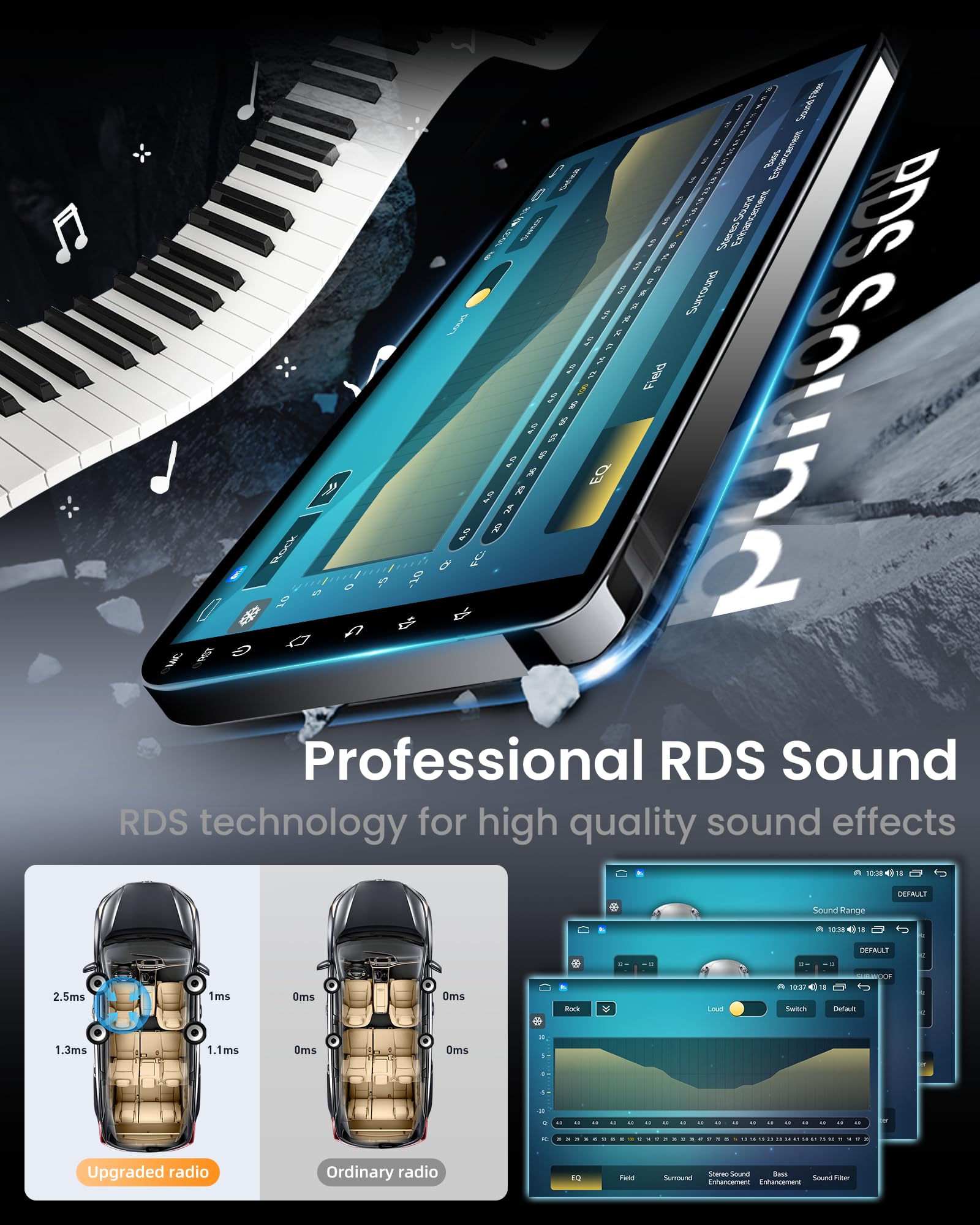 With a stunning 9-inch HD IPS touchscreen, the Fortdows stereo guarantees crisp visuals and immediate response to your touch, making interaction with your media and navigation as smooth as possible, regardless of sunlight or driving conditions.