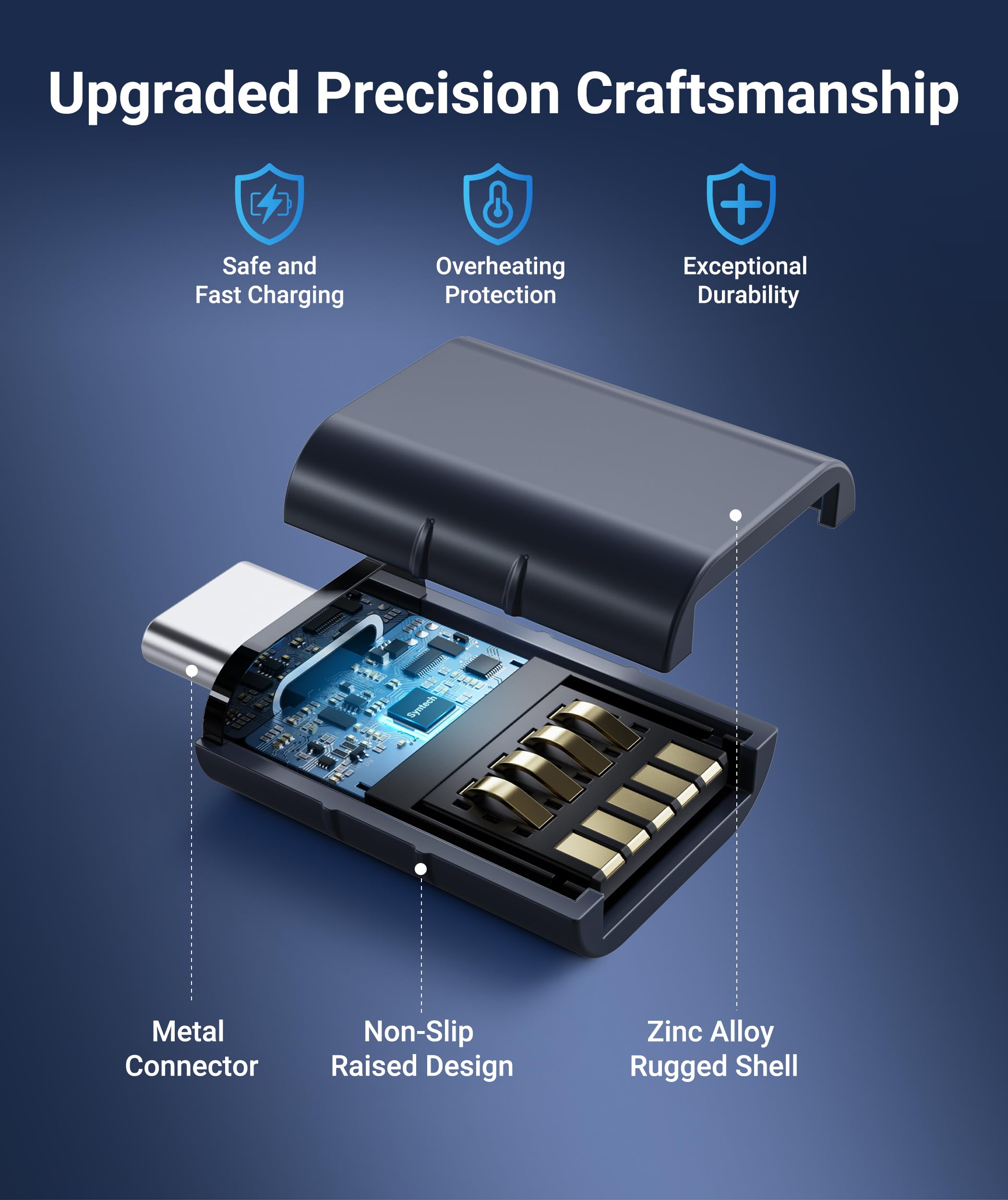 When compared to similar products, this adapter features robust construction with an anti-interference zinc alloy metallic housing, which enhances its durability and resistance to wear and tear. Many competing adapters may use lower-quality materials that do not stand up to heavy use, particularly for users who frequently plug and unplug devices. Additionally, the design incorporates anti-slippery embossments, providing a practical aspect that enhances usability in various environments.