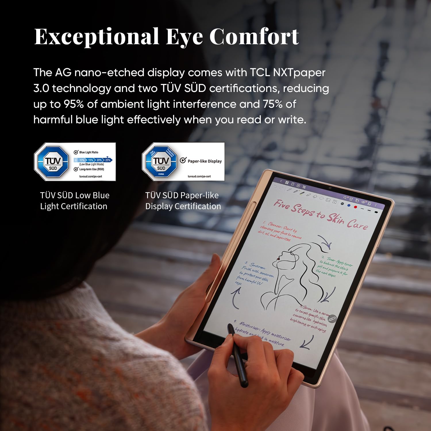 - Display Technology: AG nano-etched LCD screen with TCL NXTpaper 3.0 technology